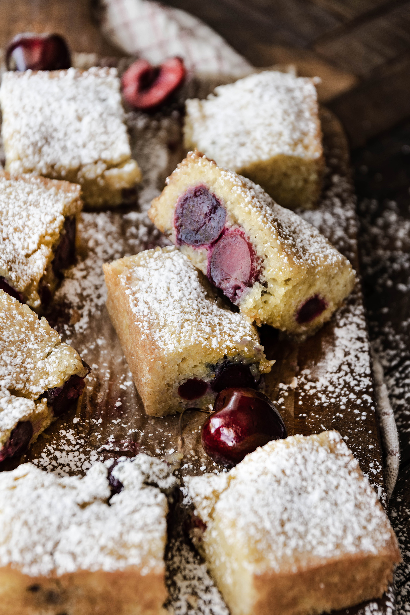 While south of Croatia – Dalmatia, has a lot of Italian influence in its cooking, northern part has a lot of Austrian and German influences and this is one example. The beauty of this cake isn’t just in how simple and yummy it is – you weigh the whole eggs (3 or 4 for example) and use the same weight of sugar, flour and butter in the recipe – it’s brilliant, but also that you can make it with any fruit. I have made it here with my favorite cherries, but it is amazing with strawberries, blackberries or blueberries and really good with peaches too. Oh and plums, I almost forgot, I really love it with plums. It was on our table almost every Sunday after lunch when I was growing up and my kids now love it just as much as I did. Cherry version just happens to be their favorite, they got their love for cherries from their Mama!